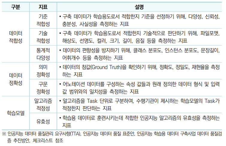 다. 인공지능 학습용 데이터 품질관리 지표