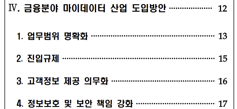 금융위원회의 "금융분야 마이데이터 산업 도입방안" 문서를 참조하여