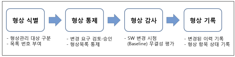 형상 식별 - 형상 통제 - 형상 감사 - 형상 기록
