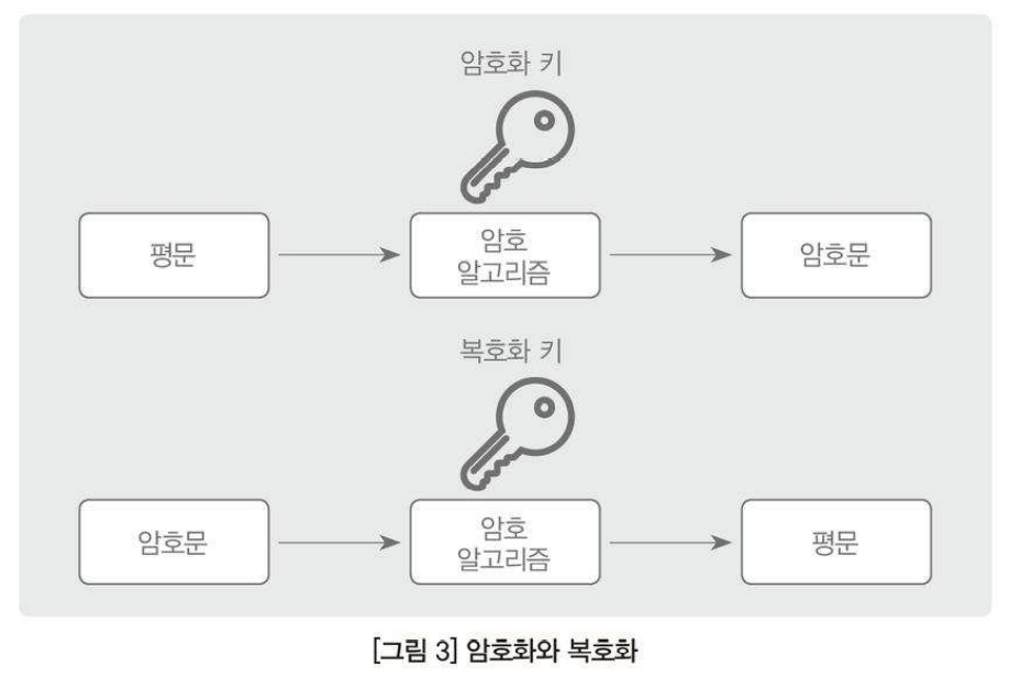 평문(Plan text)을 인가받지 않은 제 3자가 인식할 수 없는 형태로(암호문) 변환하는 과정