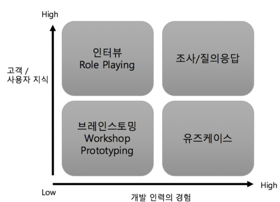 롤플레잉, 인터뷰, 설문, 관찰, 워크샵, 프로토타이핑, 유스케이스