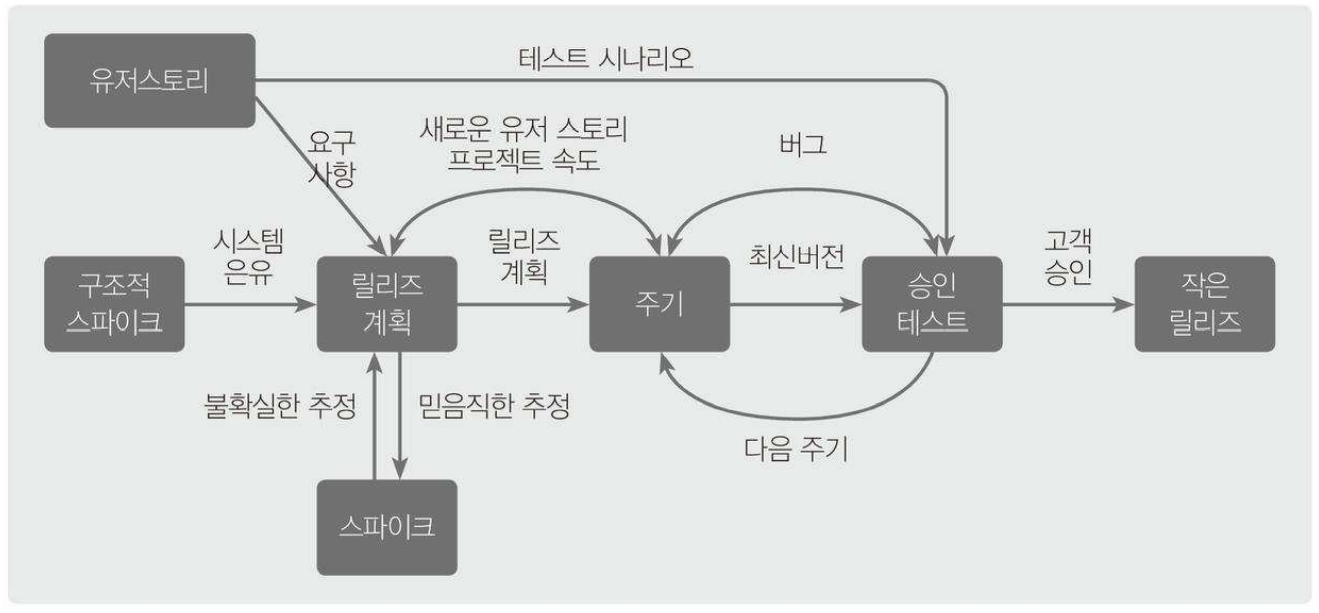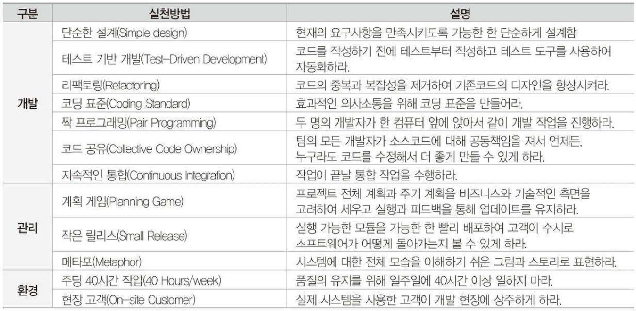 수시로 발생하는 고객의 요구사항에 유연하게 대응하기 위해 고객의 참여와 개발 과정의 반복을 극대화하여 개발 생산성을 향상하는 방법
