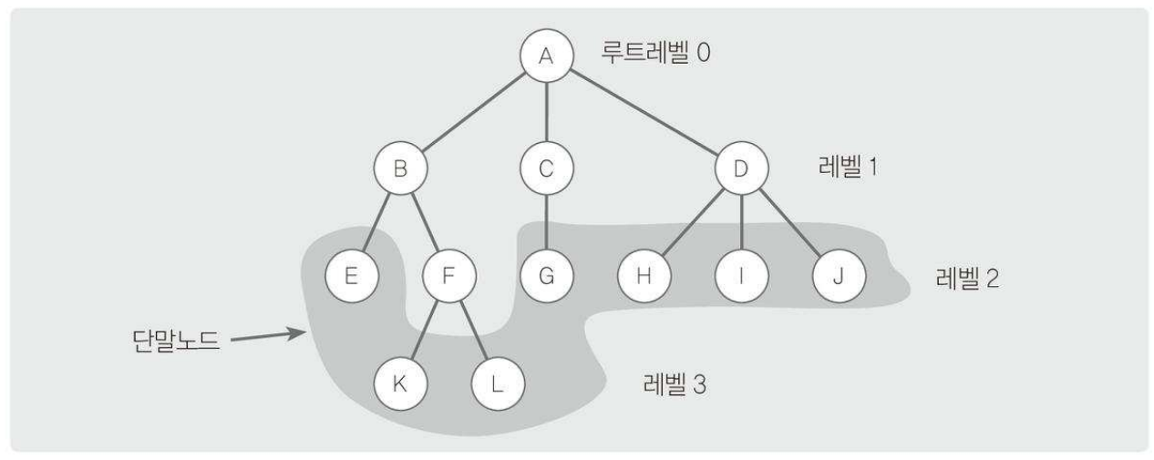 | 루트노드(root node) | 트리의 시작 노드 |