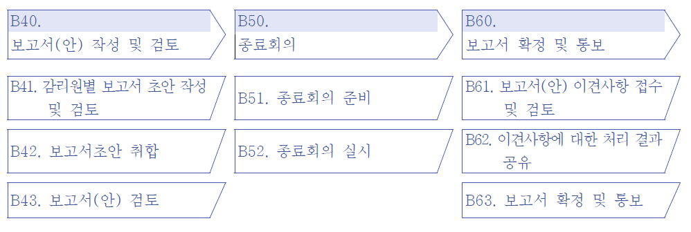 종료회의, 보고서 확정 및 통보의 6가지 활동으로 구성된다.