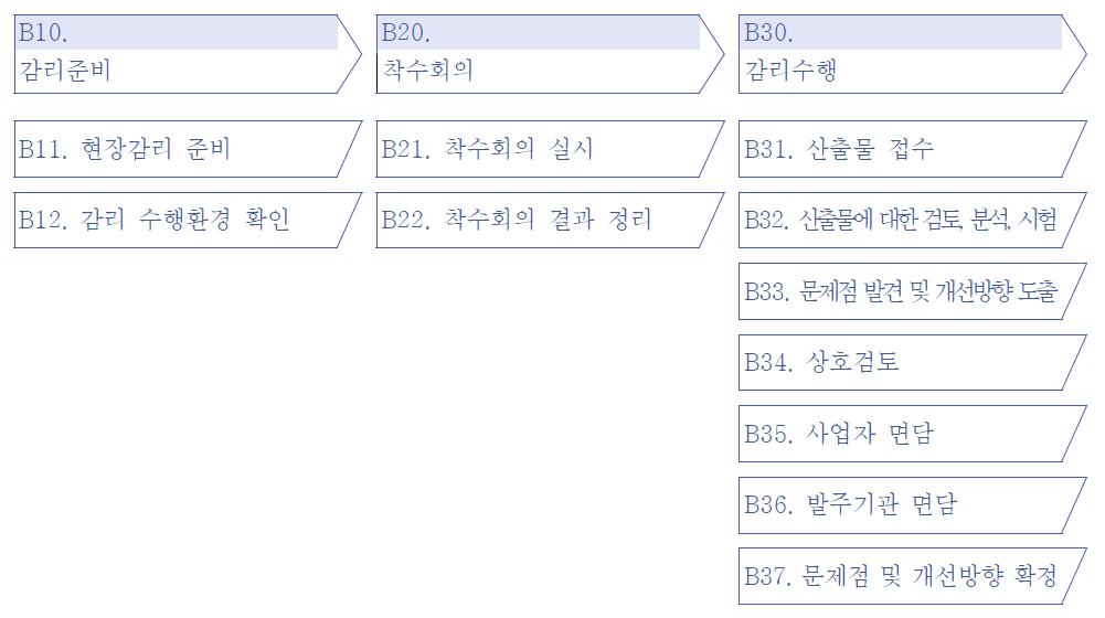이번에는 감리 수행 절차 (예비조사 - 현장 감리 - 조치 확인)에서