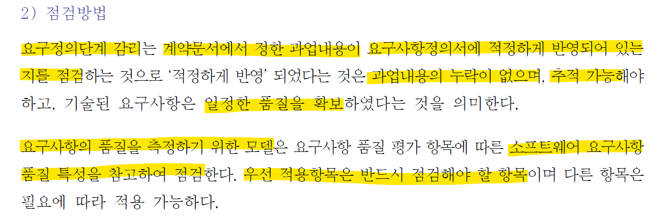 요구정의단계 감리의 점검방법 부분이지만,