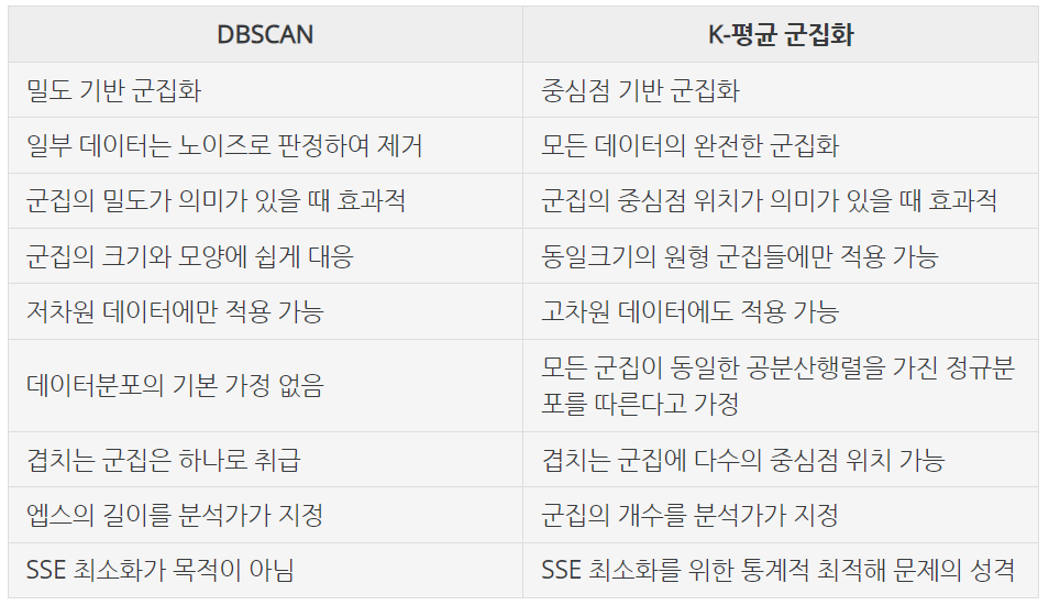 DBSCAN과 K-평균 군집화 비교