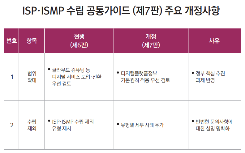 [ISP·ISMP 수립 공통가이드(제7판) 주요 개정 사항]