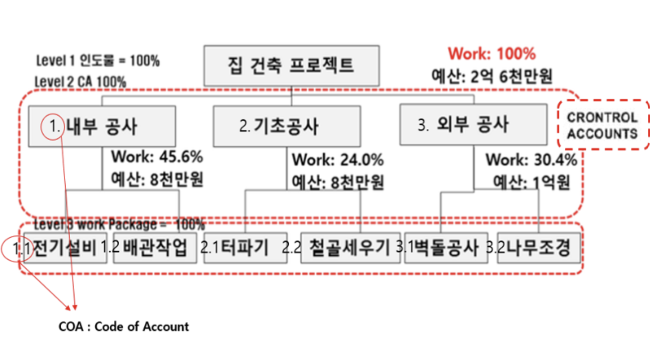 - Work Package 와 원가의 매핑 - 범위, 예산, 일정과 성과 측정을 연 계하기 위한 단위 - 원가계획을 수립하고 성과를 모니터링하는 통제 단위 |