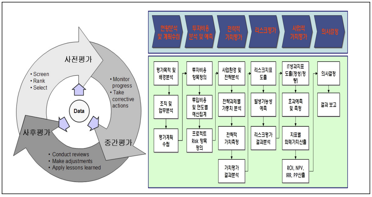 | 사후 평가 | 시스템 구축 완료후 | 운영과정에서 IT 투자의 효과성을 측정하기 위한 평가 |